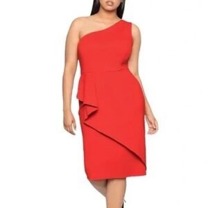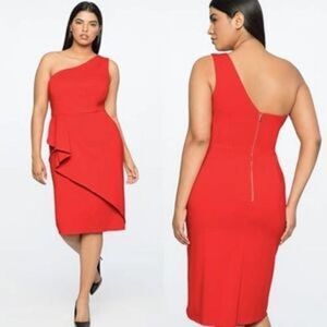 Jason Wu x Eloquii Plus Size Red Crepe Embellished Fit and Flare Midi Dress 18
