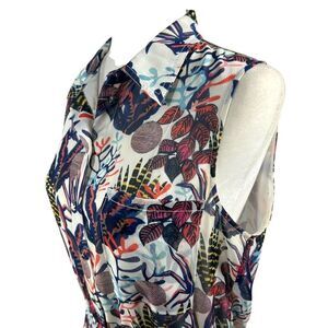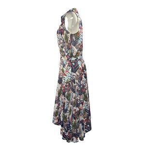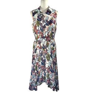 Jason Wu Grey Midi Dress Floral Print Asymmetrical Medium 8 Multicolor Sleeveles