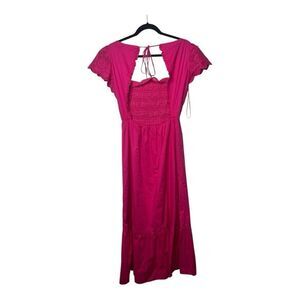Jason Wu Magenta Smocked Cut Out Eyelet Lace MIDI Dress Size S Pink Tiered