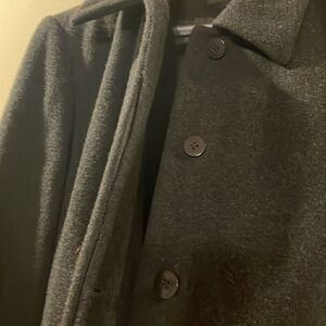 Black wool jacket in very good condition. Size L, pockets, hidden button down front. Classic piece for any wardrobe. Make us an offer!