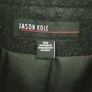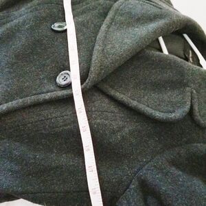 Double breasted dark charcoal/black coat. Great condition. Pockets accent on back with buttons. Wool blend.