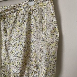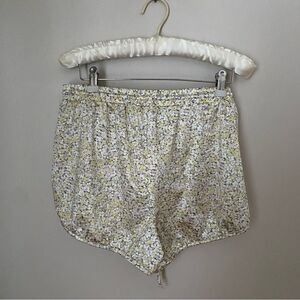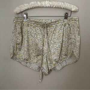 Jason Wu Pajama Shorts Lace Trim Satin Runner Stretch Yellow Floral Comfy Cute\
