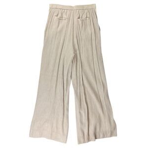 Super cute pre-owned Jason Wu Tan Taupe Crinkle Crepe Wide Leg Pants Size Medium. 30” waist, 29” inseam. Side slit pockets and two back pockets. Pants are lined. Elastic waistband in the back. Rayon fabric contracts after wash but goes back to its original size after steaming. Style WA9790-201-6PA. No stains or holes. Please ask all questions before purchasing.