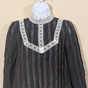 Jaspal Whimsigoth Blouse Lace Witchy Highneck Goth Semi Sheer XS Coquette
