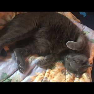 My kitty is so sweet isn’t he. His name is Jasper. He is a Chart-rues. A very smart. One of the smartest breeds of cat. But he’s also fluffy and furry and huge. He’s turning four soon. Apparently they can get upwards of 30 pounds. But isn’t he so sweet