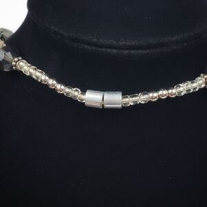 Heavy beaded statement necklace with extra large oval jasper stones, gray and silver tone glass/ metal beads, and a magnetic clasp
