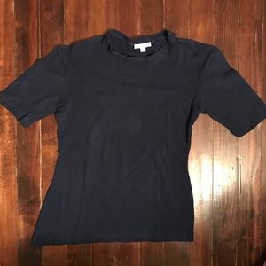 Tight fit navy blue short-sleeve. very good quality, high-end designer. barely worn.