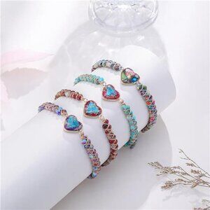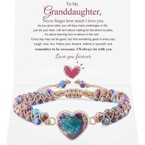 Jasper Heart Bracelet Adjustable Beaded Braided Handmade Jewelry Gift for Women