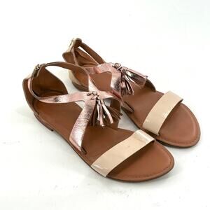 Jasper & Jeera Tassel Sandals 8 38 Gold Tan Leather Anthro Boho Travel Resort