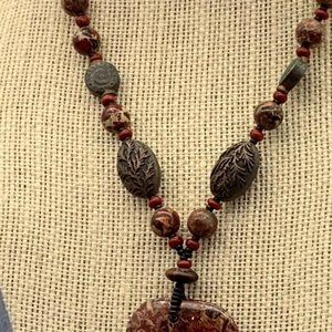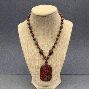Jasper Stone Necklace Pendant Branch Oval Red Brown Copper Gray