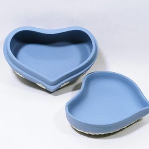 Jasperware Wedgewood Covered Heart Dish Blue & White Trinket Box Queensware (4c)