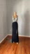 Rhinestone and sequin top, plunge neckline, three eyelets attach in middle back, low back with zipper, left leg middle-thigh slit.