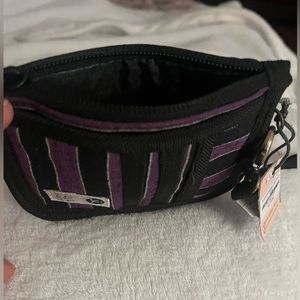 Has four card holders two zipper compartments for change or bills
