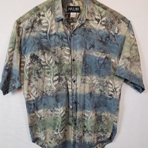 Java Lava Shirt Men's XL Blue Hawaiian Art Abstract Tropical Cotton Button Up