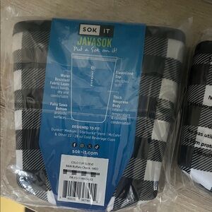 Javasok Sok It black and white plaid cup cozy size small 20oz and medium 22-28oz