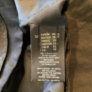 Rare & gorgeous black polyamide & metal blend. Button collar detailing. Attached button up vest. Double layered collar, hem, and wrist cuff. Front mocked pockets. Fully lined.