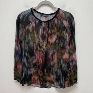 Javier Simorra Barcelona Womens Multicolor Printed Semi Sheer Long Sleeve Top 6