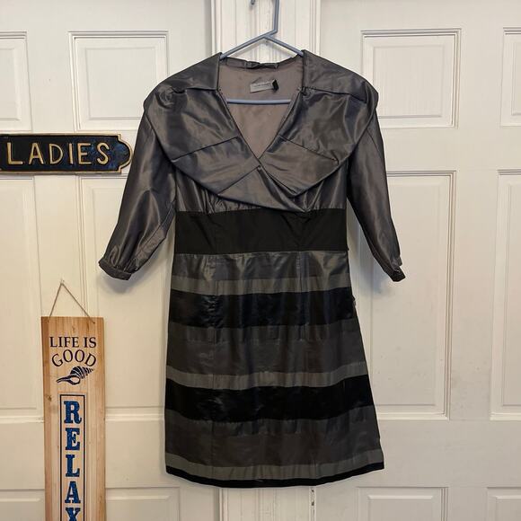 Javier Simorra Barcelona knee length Silver Dress Evening 3/4 sleeve size 8