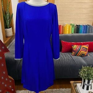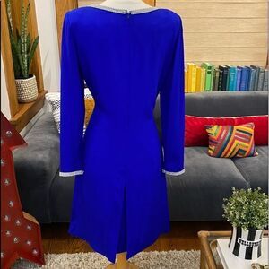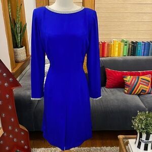 Jaw Dropping Vintage 1960’s / 1970s Neon Cobalt Rhinestone Trim Dress