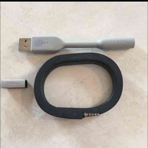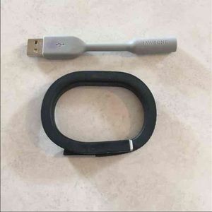 The Jawbone tracks activities, meals and calories throughout the day! This band it gently used! Great condition! Connects to smart phones through Bluetooth/headphone jack.