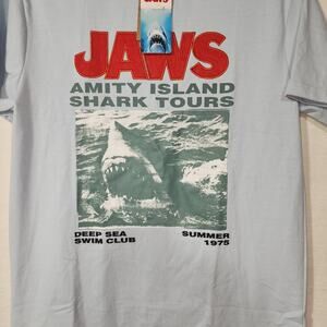 Jaws Amity Island Shark tours men blue shirt medium