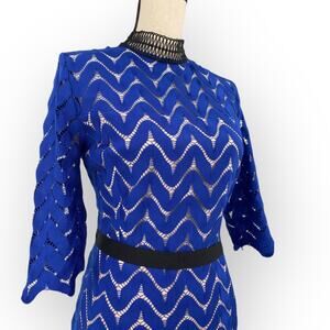 Jax Black Label Chevron Knit Illusion Midi Dress Cobalt Blue 14