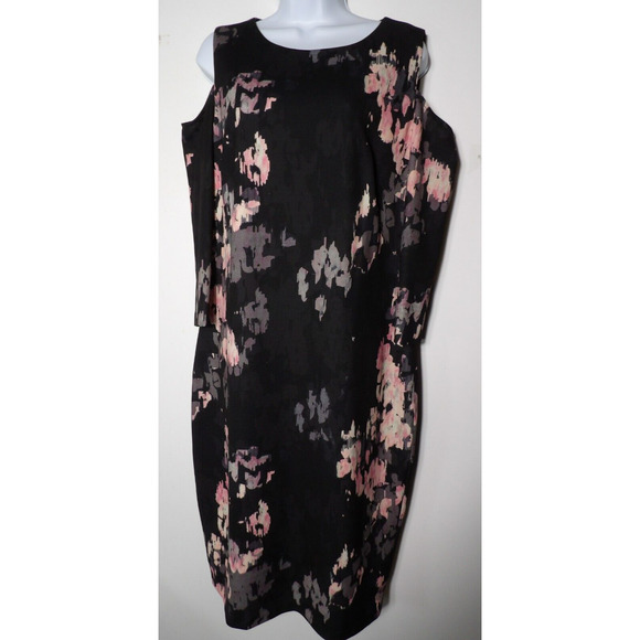Jax Black Label Dress Sz 14 Midi Cold Shoulder Floral Black Zip Back Sheath