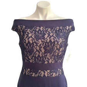 Jax NWT $119 Navy Lace Overlay Sheath Dress Off-Shoulder Neckline Women's Size 8