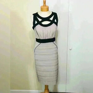 Jax Women’s Elegant Sleeveless Fitted Evening Cocktail Taupe Black Dress Size 8