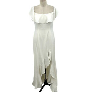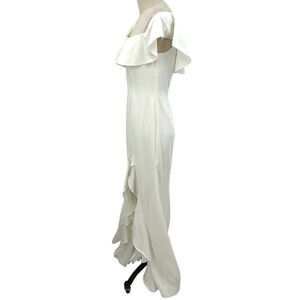 Jay Godfrey Balon White Ruffle Shoulder Long Crepe Gown Size 6