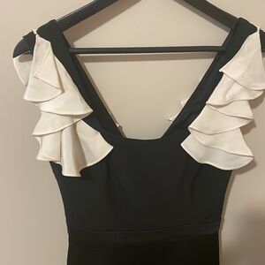 Jay Godfrey Black Mini Jacquard Pencil Skirt Ruffle Sleeveless Dress