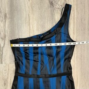 Jay Godfrey Blue Black Stripe One Shoulder Sleeveless Asymmetrical Dress Size 2