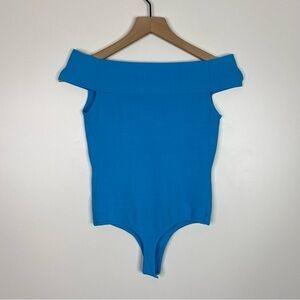 Jay Godfrey Bright Blue Foster Off the Shoulder Knit Stretchy Thong Bodysuit
