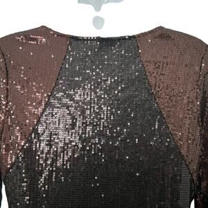 Jay Godfrey Chocolate Brown Black Colorblock Half Sleeve Sequin Mini Dress sz 8