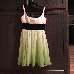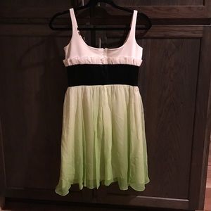 Stunning Jay Godfrey Cocktail Dress. White silk top and black silk waistband that sits just below the bust, giving a nice empire shape. Comfortable with or without a bra. Ombré lime green skirt.