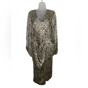Jay Godfrey Gold & Black Animal Print Midi Dress – Size 12