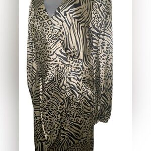 Keywords: Jay Godfrey dress, animal print midi, gold black dress, long sleeve party dress, designer cocktail dress