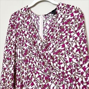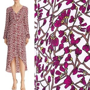 Jay Godfrey Kareem Faux Wrap Midi Dress 2 magenta dark pink floral long sleeve flowy high low garden party event wedding guest
