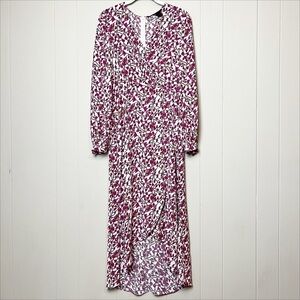 Jay Godfrey Kareem Faux Wrap Midi Dress 2 pink floral long sleeve flowy high low