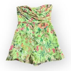 Jay Godfrey Lydia Romper Women's 8 Green Floral Short Strapless Sweetheart