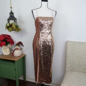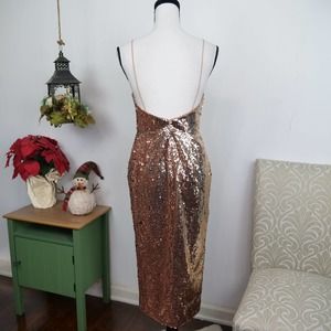 Jay Godfrey Maurice Rose Gold Sequin Dress Size 4 Cocktail Party Midi Slit