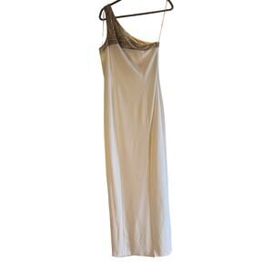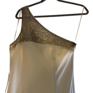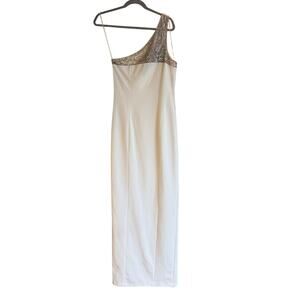 Jay Godfrey One-Shoulder Sequin Beaded Gown White Silver Size 10 NWT