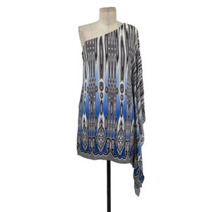 Jay Godfrey Paradis Silk One Shoulder Aztec Print Mini Dress Gray Blue Size 6