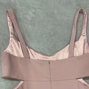 Elegant pink midi dress with cut-out details. Sleeveless design. Perfect for special occasions. Very flattering