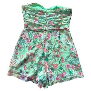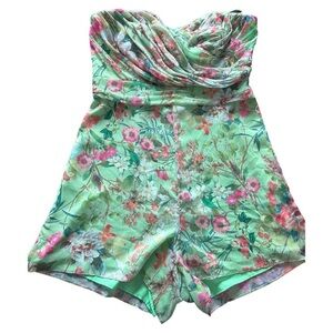 Jay Godfrey Romper Green Floral Print Chiffon Strapless Lydia Boho