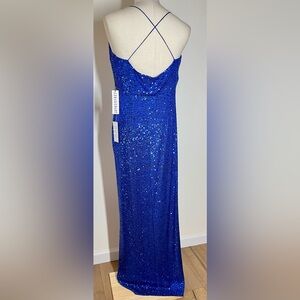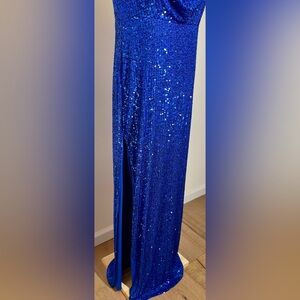 Jay Godfrey brand sequin gown in the color royal blue. Women’s plus size 16. Stretchy fabric with micro sequins.