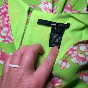 Jay Godfrey Ruffled Flutter Sleeve V-Neck Floral Mini Dress Green Pink Size 2