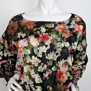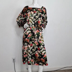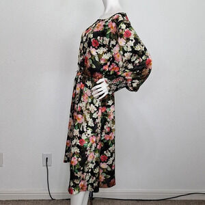 Jay Godfrey Silky Floral Bloomcore Long Balloon Smocked Sleeve Midi Dress Size 6