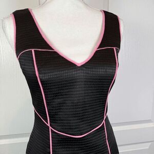 Jay Godfrey Sleeveless Textured Mini Dress Black with Pink Vee Back Zip Size 4