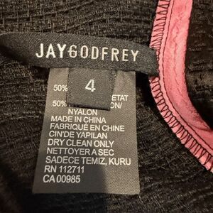 Jay Godfrey Sleeveless Textured Mini Dress Black with Pink Vee Back Zip Size 4. Excellent condition. See photos for details and unstretched measurements. Shop my closet and bundle multiple items for discounts and one shipping fee!
